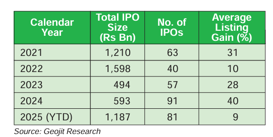 In the near-term, higher household spending during the festive season, coupled with the continued underperformance of Indian equities, may contribute to volatility in the secondary market. The market remains somewhat vulnerable, as direct retail investment has declined. This underscores the importance of renewed FII inflows, which have been absent over the past 12 months, in supporting future market performance.
