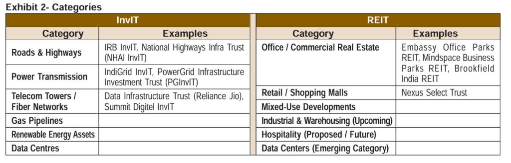 Within the Infrastructure segment, InvITs focus on categories like roads and highways, power transmission etc. Similarly, REITs look at commercial real estate. Current regulations mandate that each instrument (InvIT or REIT) must focus on a single category and doesn’t have an amalgamation of different categories.