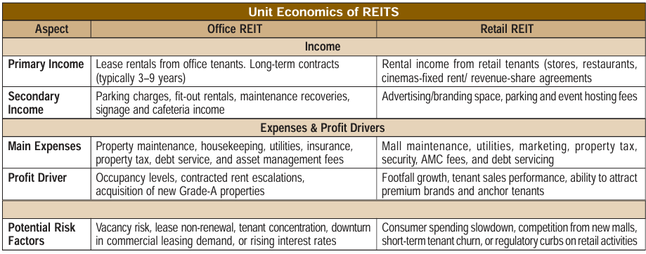 In many ways, REITs and InvITs are like mutual funds for real assets. Instead of pooling money to buy stocks or bonds, they pool investor capital to own income-generating real estate or infrastructure projects. Each unitholder owns a fractional share in the trust’s portfolio — much like mutual fund investors own a share of the underlying securities. The difference simply lies in the asset class: where mutual funds give exposure to financial markets, REITs and InvITs open the door to India’s offices, malls, roads, and power lines.