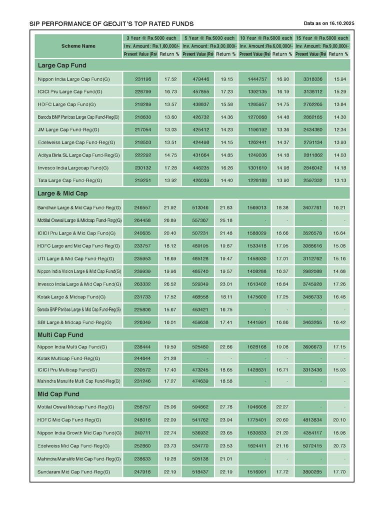 UUncategorized SIP performance of Geojit’s top rated funds – November 2025 byGeojit TeamOctober 31, 2025 0 Shares 0 0 0 0 0 Shares: Share 0 Tweet 0 Share 0 Share 0 Geojit Team Leave a Reply Cancel replyYour email address will not be published. Required fields are marked *Comment * Name * Email * Website Save my name, email, and website in this browser for the next time I comment. What is 7 + 2? * View Comments (0)