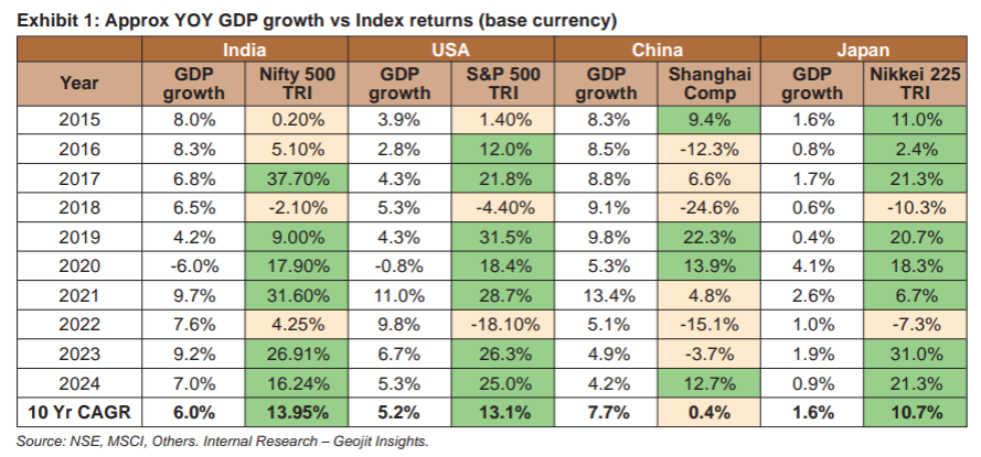 So before accepting or rejecting the logic the GDP Growth leads to Market Growth, we decided to test it — not just in India, but across other major economies where GDP and market structures differ widely.