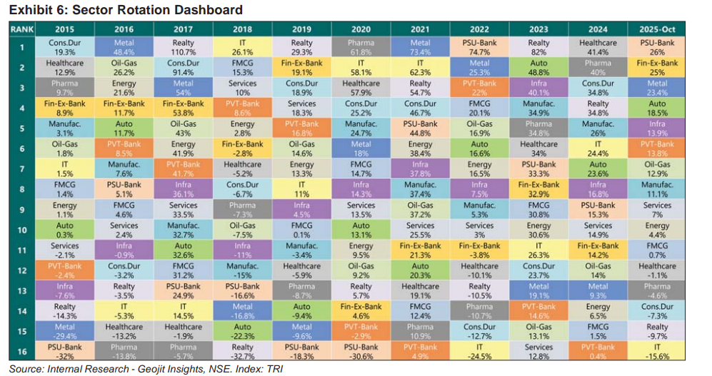So, if GDP isn’t the sole driver, what does make the index move? In our experience, it’s a cocktail of sector-specific tailwinds, earnings growth, liquidity, reforms, and most importantly valuation discipline. Over the long term this turns out to be extremely crucial when establishing long-term returns for investors. Sector rotations keep happening and it is our job to know when to be cautious in certain sectors and when to be aggressive.