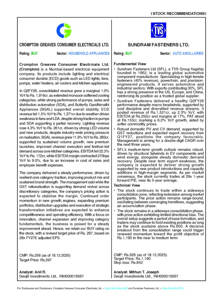 UUncategorized Stock recommendations – January 2026 byGeojit TeamDecember 31, 2025 0 Shares 0 0 0 0 0 Shares: Share 0 Tweet 0 Share 0 Share 0 Geojit Team Leave a Reply Cancel replyYour email address will not be published. Required fields are marked *Comment * Name * Email * Website Save my name, email, and website in this browser for the next time I comment. What is 2 + 6? * View Comments (0)