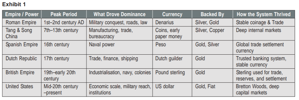 This piece is not an attempt to predict how economies or markets will behave in the future. It is an effort to examine the global monetary system without alarmism, to recognise that subtle shifts are underway, and to ask a more practical question: how investors can respond thoughtfully.