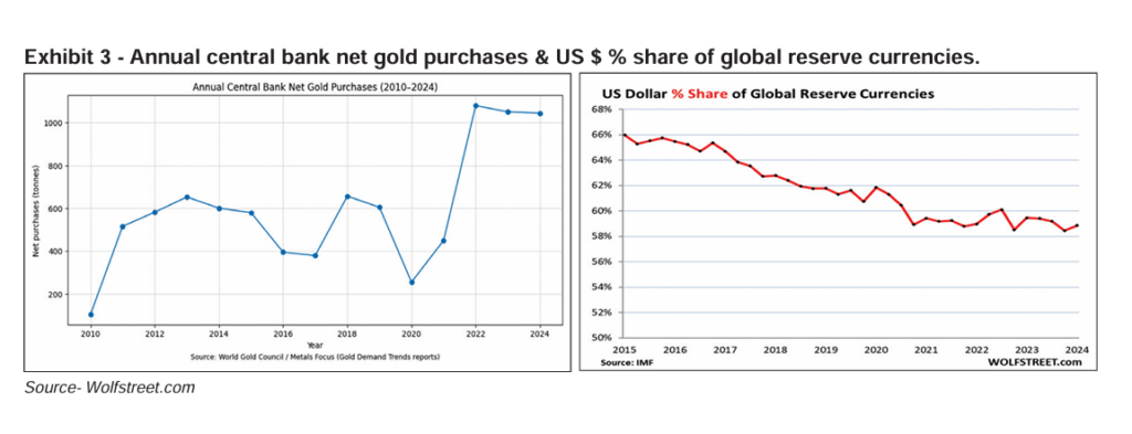 Exhibit 3 – Annual central bank net gold purchases & US $ % share of global reserve currencies.