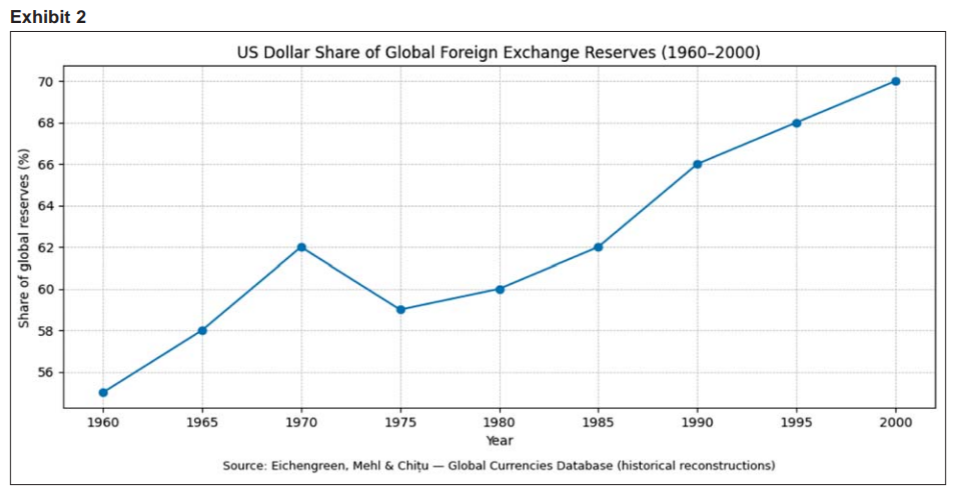 This piece requires us to wear both hats: that of the economist and that of the investor. It is an attempt to examine a topic that has surfaced repeatedly in recent discourse “De-dollarisation”. In simple terms, de-dollarisation refers to a gradual reduction in the use of the US dollar in global trade and financial transactions, and a corresponding decline in reliance on the dollar by nations, institutions, and corporations.
