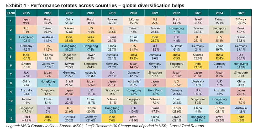 The implication for investors is straightforward. The opportunity set is global, and portfolios that remain narrowly domestic risk missing where value is being created.
