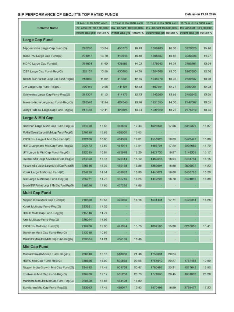 UUncategorized SIP performance of Geojit’s top rated funds- February 2026 byGeojit TeamJanuary 29, 2026 Growth written on wooden blocks and growing plant on dark black background. 0 Shares 0 0 0 0 0 Shares: Share 0 Tweet 0 Share 0 Share 0 Geojit Team Leave a Reply Cancel replyYour email address will not be published. Required fields are marked *Comment * Name * Email * Website Save my name, email, and website in this browser for the next time I comment. What is 2 + 3? * View Comments (0)