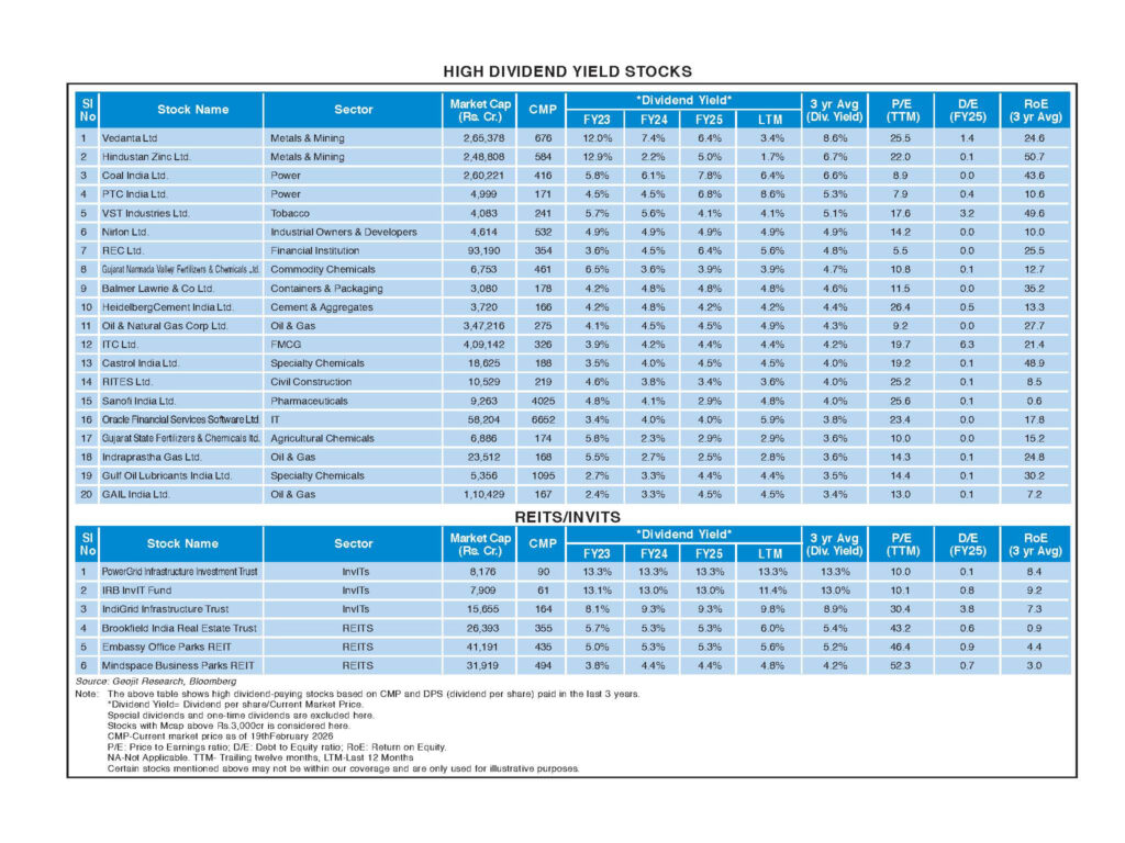 EEquity Markets High dividend yield stocks – March 2026 byGeojit TeamFebruary 27, 2026 0 Shares 0 0 0 0 0 Shares: Share 0 Tweet 0 Share 0 Share 0 Geojit Team Leave a Reply Cancel replyYour email address will not be published. Required fields are marked *Comment * Name * Email * Website Save my name, email, and website in this browser for the next time I comment. What is 2 + 2? * View Comments (0)
