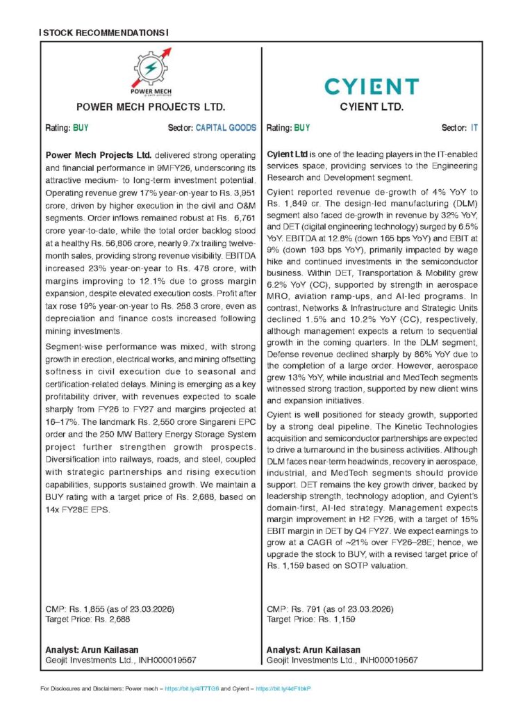 EEquity Markets Stock Recommendations – April 2026 byGeojit TeamMarch 31, 2026 0 Shares 0 0 0 0 0 Shares: Share 0 Tweet 0 Share 0 Share 0 Geojit Team Leave a Reply Cancel replyYour email address will not be published. Required fields are marked *Comment * Name * Email * Website Save my name, email, and website in this browser for the next time I comment. What is 3 + 7? * View Comments (0)